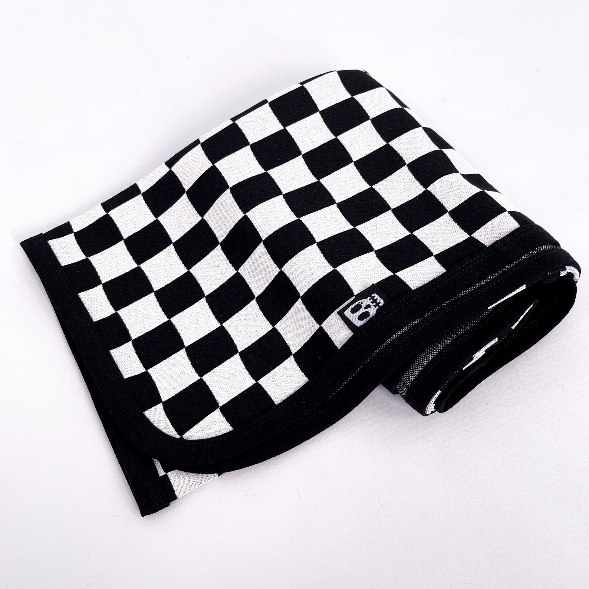 Black & white checkerboard baby blanket, a cool alternative to a traditional blanket.