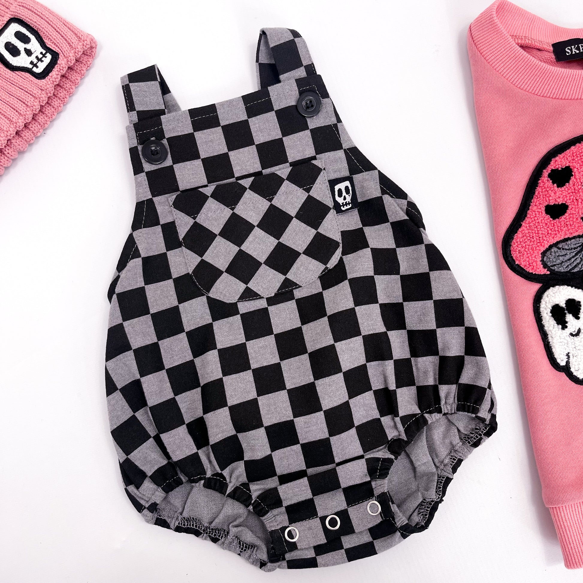 CHECKERBOARD GREY & BLACK BABY ROMPER