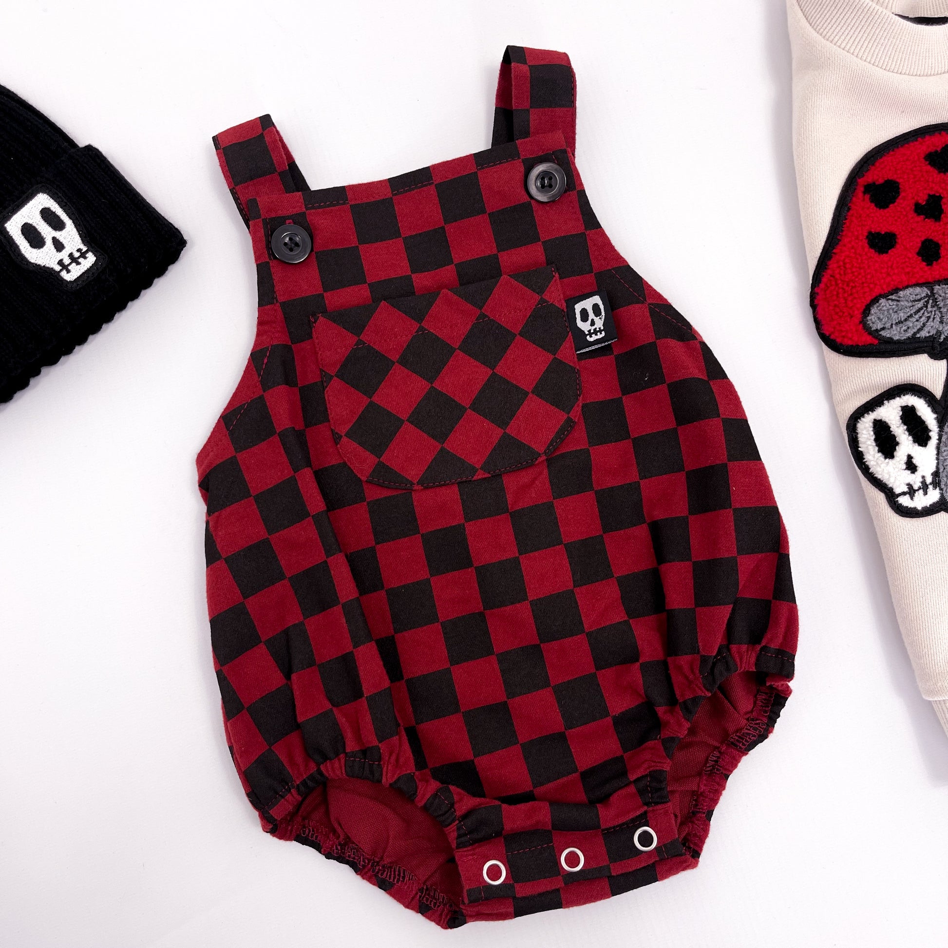 CHECKERBOARD RED & BLACK BABY ROMPER