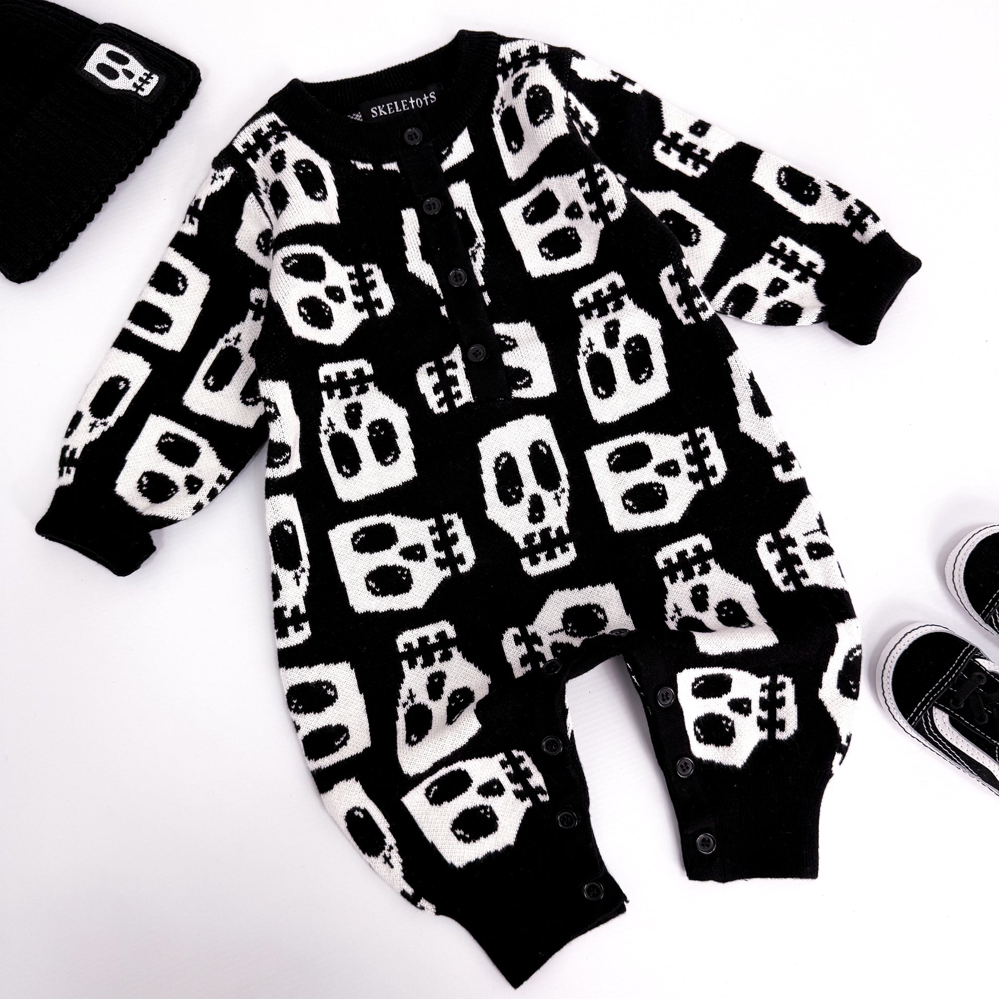 CHUNKY KNITTED BLACK SKELLY SKULL ALL IN ONE