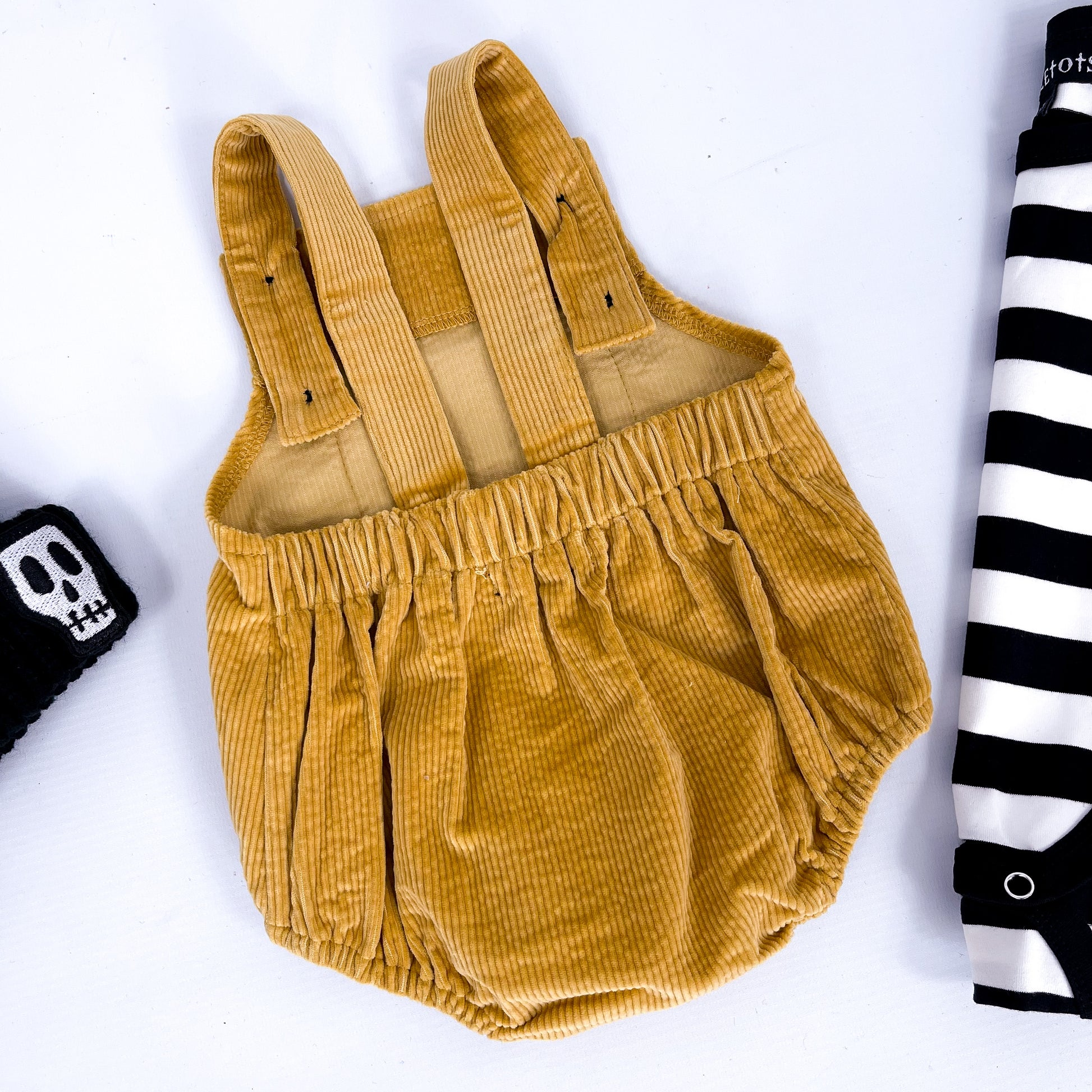NOT SO BASIC MUSTARD CORD BABY ROMPER
