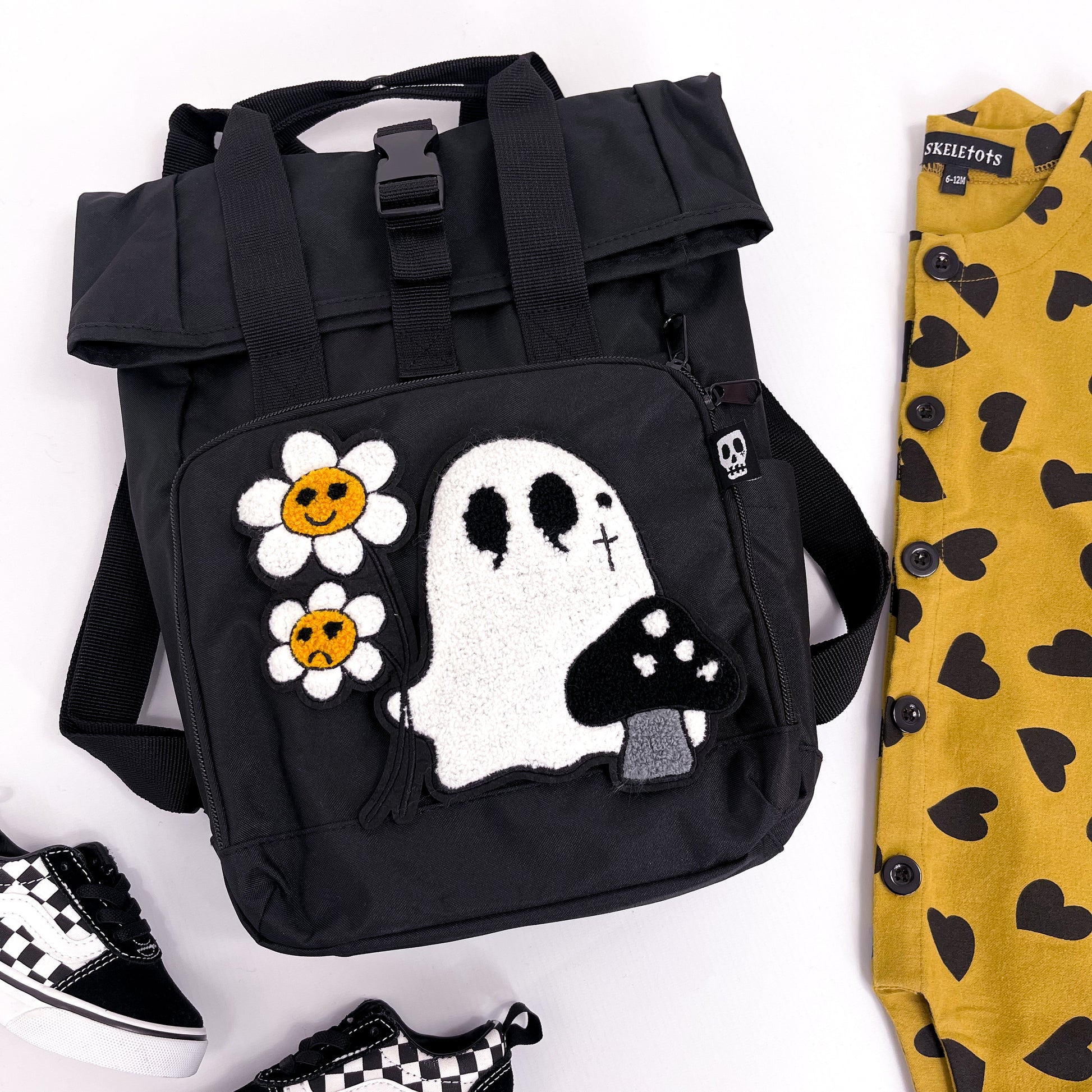 MUSTARD DAISY GHOST PATCH ROLL TOP BACKPACK BAG
