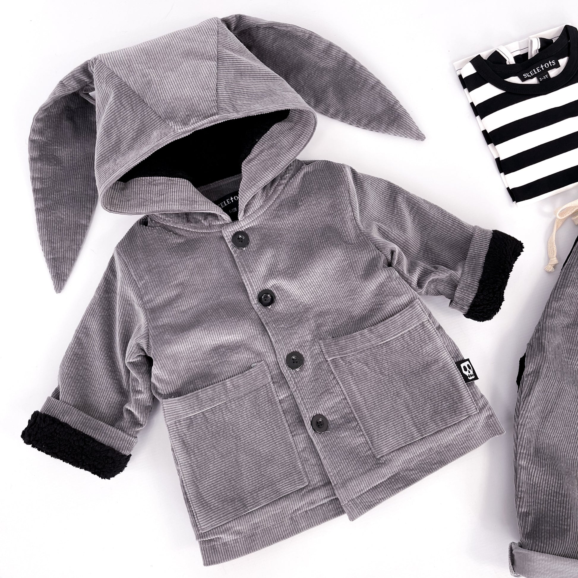 NOT SO BASIC CORD GREY BUNNY EAR COAT