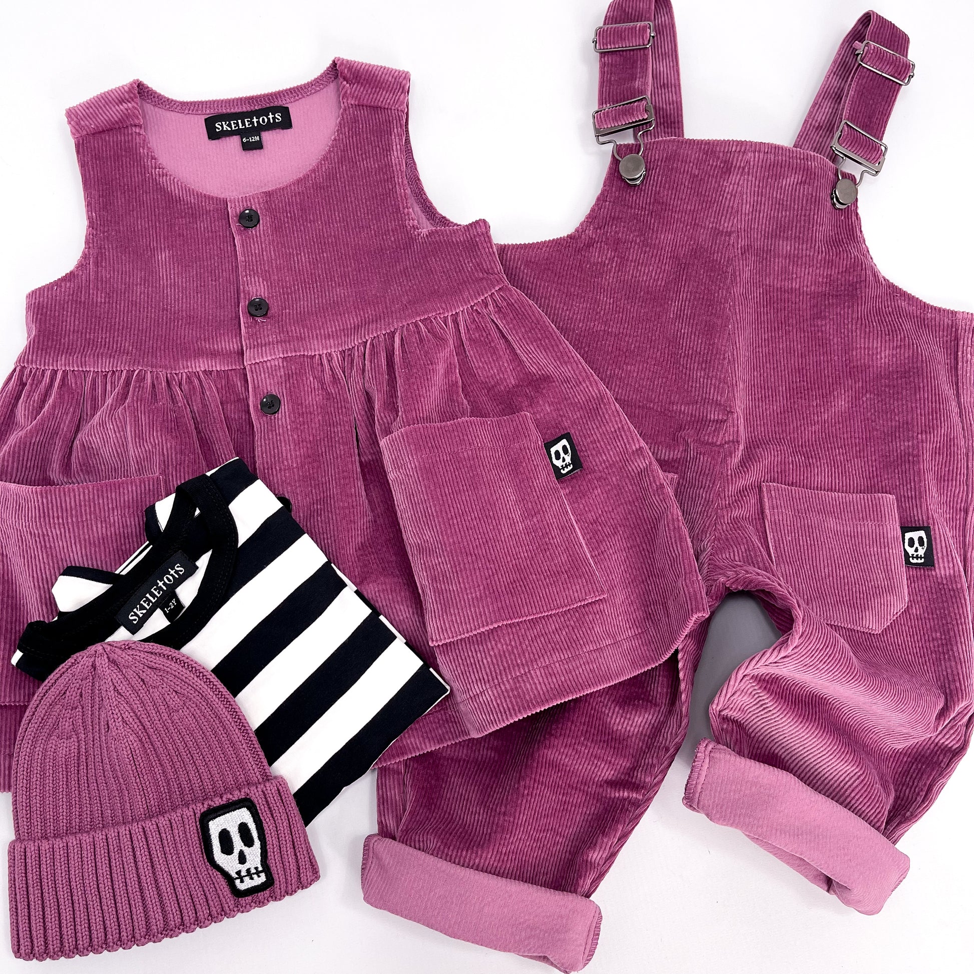 NOT SO BASIC MAUVE CORD PINAFORE SMOCK DRESS