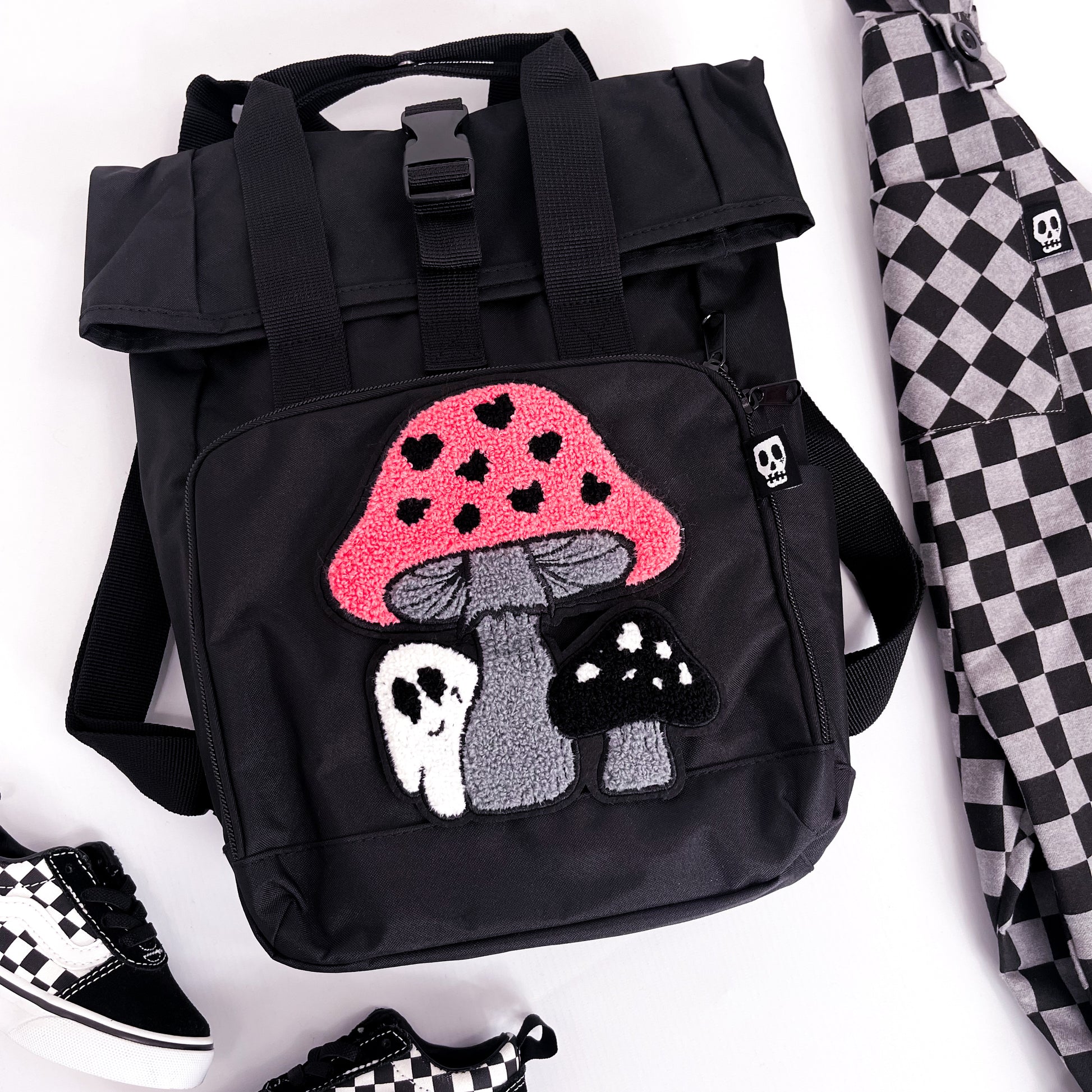 PINK TOADSTOOL GHOST PATCH ROLL TOP BACKPACK BAG
