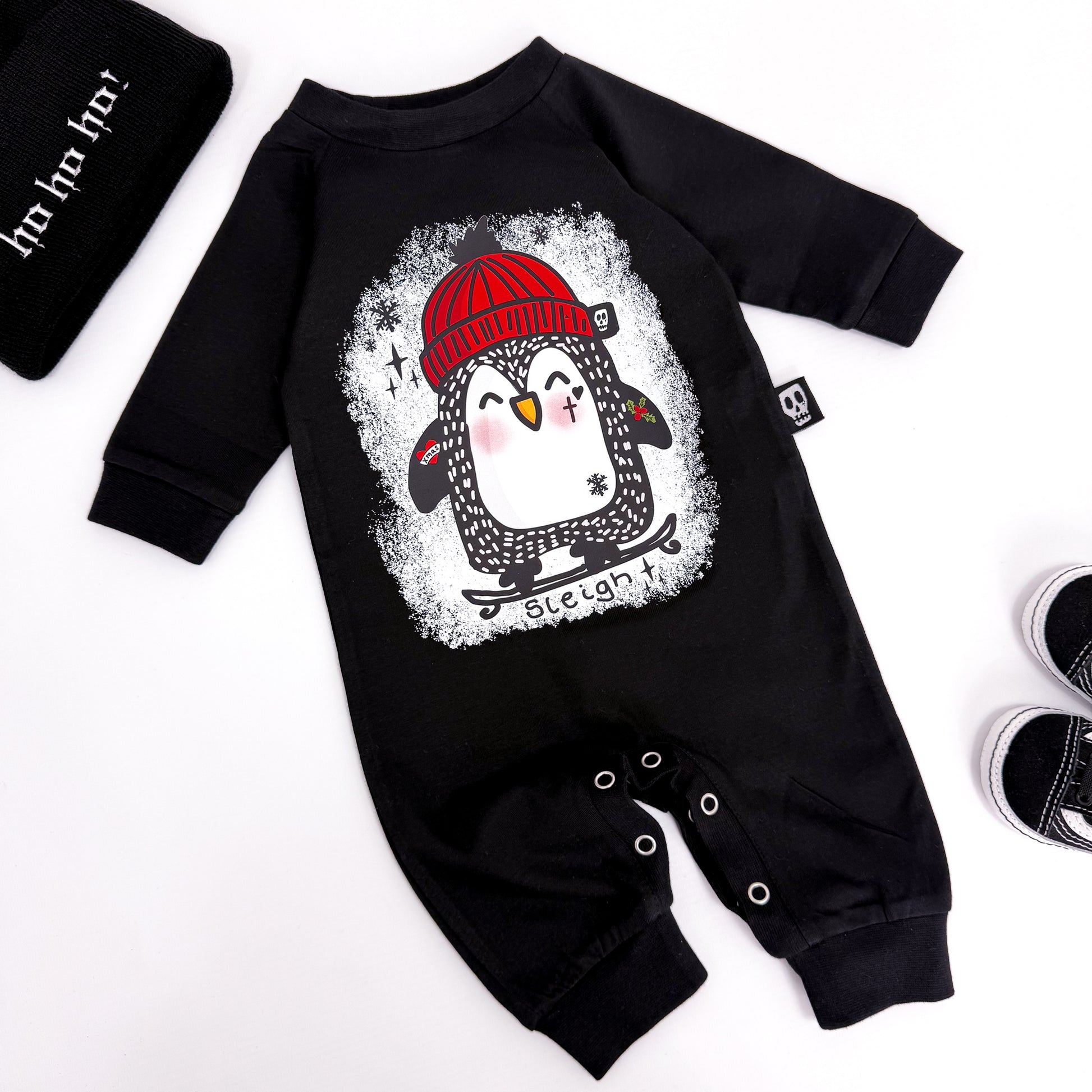 SLEIGH PENGUIN CHRISTMAS FOOTLESS ROMPER